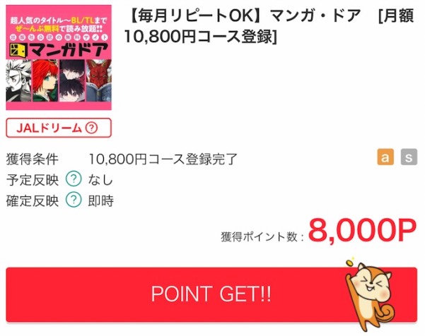 10,800円コース登録で8,000ポイントが獲得できます。