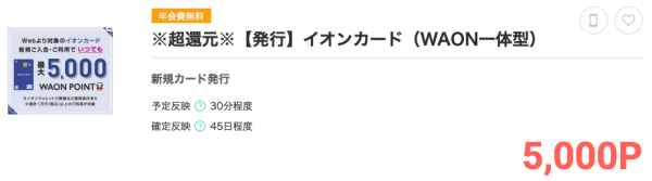 ポイント獲得条件は、イオンカード(WAON一体型)の初回カード発行完了となります。