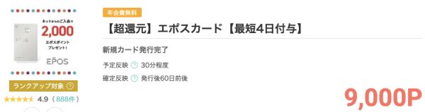 >エポスカード発行で9,000円相当のポイントをもらうのはこちらから