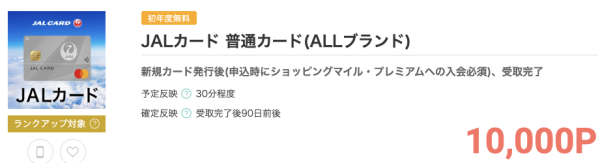JALカード(普通カード)発行はモッピー経由がお得
