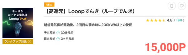 さらにLooopでんきをポイントサイト「モッピー」経由で契約すると、モッピーからポイントがもらえるキャンペーンも実施しています。