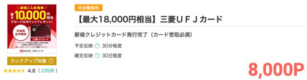 三菱UFJカード発行でモッピーポイント獲得