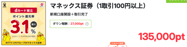dカードを投資信託のクレカ積立に使った場合、dポイントが最大3.1%のポイント還元率でもらえます。