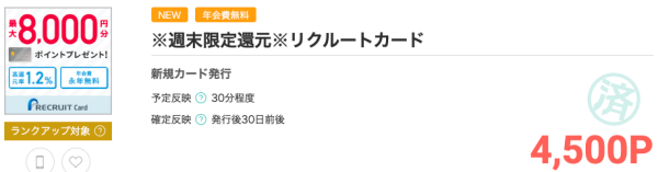 - リクルートカード新規入会で1,000ポイント