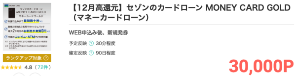 「マネーカードゴールド」発行でモッピーポイント獲得